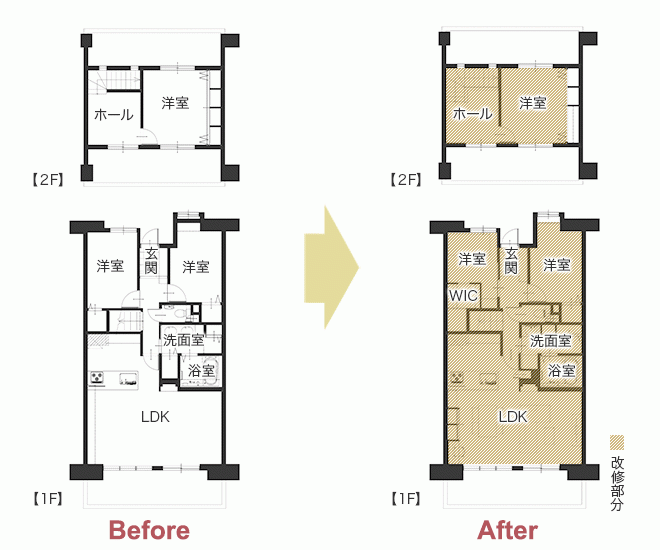 | リフォーム箇所 | リビング、ダイニング、キッチン、浴室、トイレ、洗面室、洋室、玄関、ウォークインクローゼット、階段 |