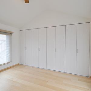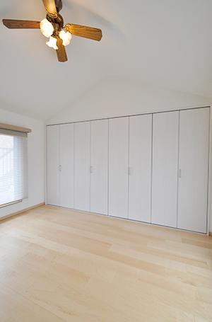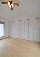 メゾネットタイプのマンションなので上階にもお部屋が。洋室の収納は、可動棚+枕棚・パイプなどで収納量UP!階段はメープル色の面材を上貼りして、上階のフローリングと雰囲気を合わせています。