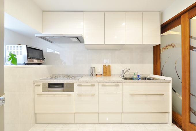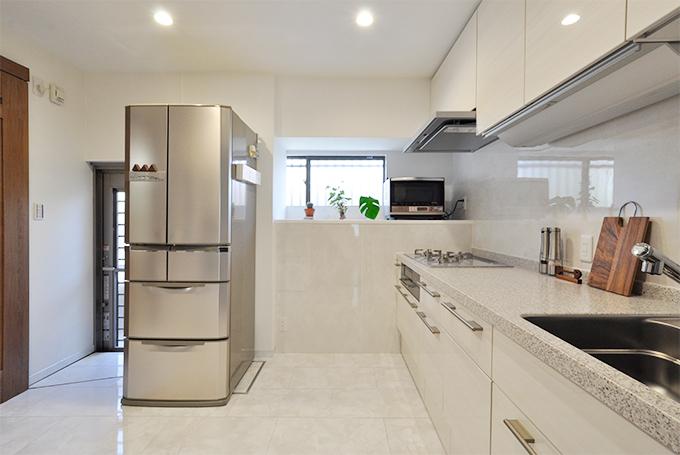 築浅の戸建住宅を購入し、内装リフォームをしてお住まいだったI様。お孫さんの誕生で娘さんご夫婦が遊びにいらっしゃる機会が増えるため、購入時のまま使用していた水回り設備(キッチン・お風呂・洗面)をリフォームすることに。キッチンは横から縦にレイアウトを変更し作業スペースを確保し使い勝手を改善。床材はキズや汚れに強い鏡面仕上げで、床暖房も敷設しました。お風呂は人気のマイクロバブル湯を導入し、お孫さんとのバスタイムがお楽しみいただけるようになりました。