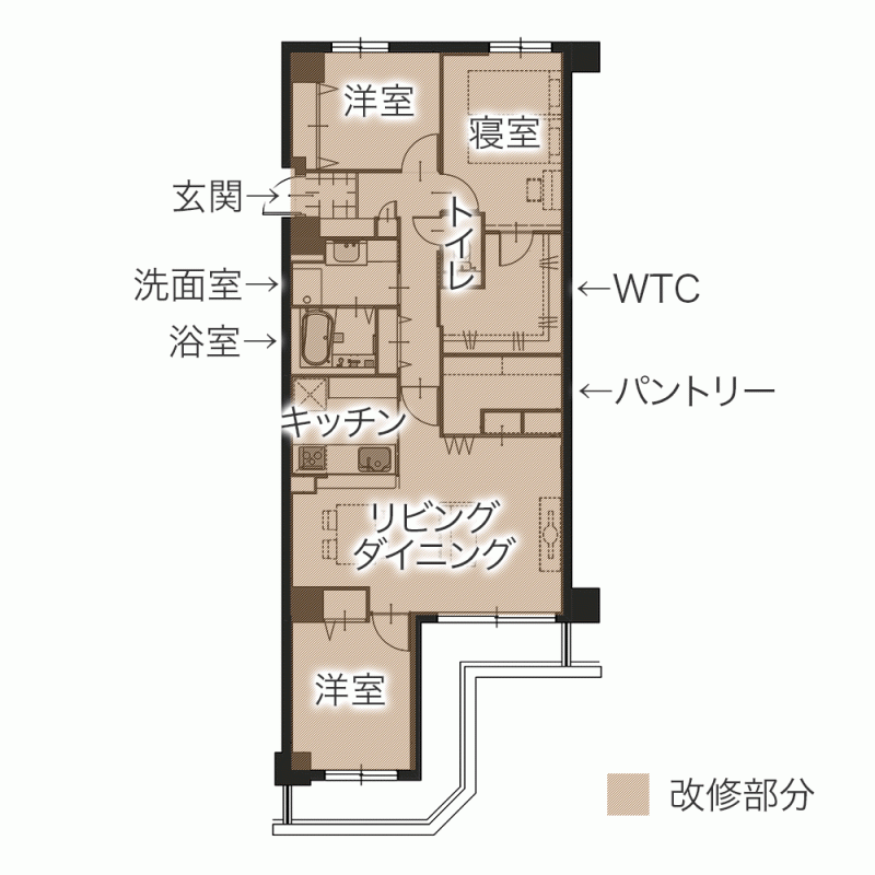 結婚して1年が経ち、賃貸から持ち家に住み替えたいと考えていました。マイホームを持つなら、仕事柄、手間がかからないマンションで、なるべく住み慣れたエリアの駅近という条件を最優先に、いろいろな不動産会社を見ている中で、モアリビングと同グループ会社であるRエイジ不動産を知りました。そこで物件探しからその後のリノベーションまで一貫して対応してくれるところや、定額パックで費用の目安がつきやすかったことが決め手でお願いすることに。 夫婦ともにスヌーピーが好きで、パントリーやトイレのアクセントクロスでスヌーピー柄を入れたり、ウォークスルークローゼットやパントリーなど十分な収納が確保できたこと、全体的な使い勝手など希望通りの仕上がりに、思い切って持ち家にして本当によかったと感じています。
