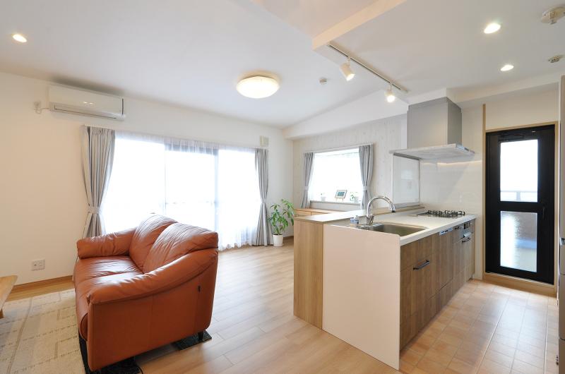 立地や広さが希望条件に合い、現在のお住まい近くで中古マンションを購入されたN様。対面式ではあるものの吊戸や袖壁で閉鎖的なキッチンや、足が伸ばせない浴槽など水まわりを中心に全面リフォーム。