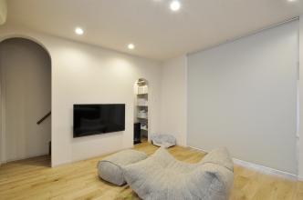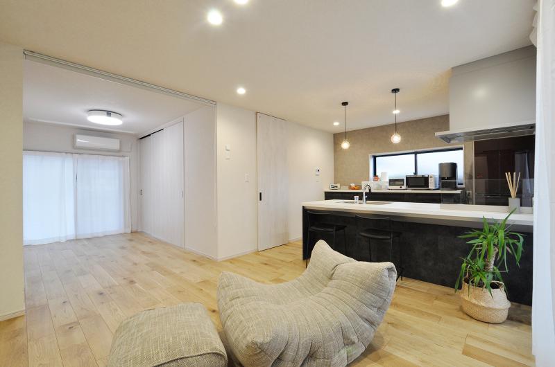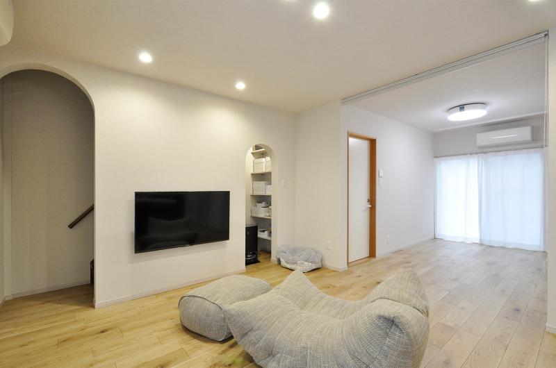 和室とつなげてワンルームに。襖があった場所にはロールスクリーンを取り付けているので、急な来客があってもサッと目隠しができます。リビング階段のロールスクリーンも下ろせば冷暖房を効率よく効かせることができます。