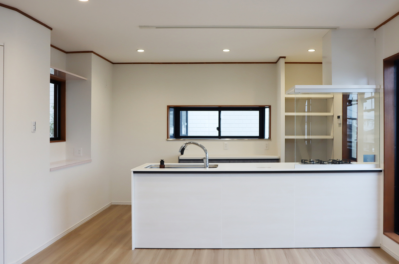 LDKは隣接する洋室との間の壁をなくしてスペースを拡張。床材は滑りにくくワンちゃんの足に優しいイクタ/プリオス介護とペットに張替え。キッチンも壁付け型からフラット対面型に変えることでお料理をしながら、愛犬を見守れるようになりました。