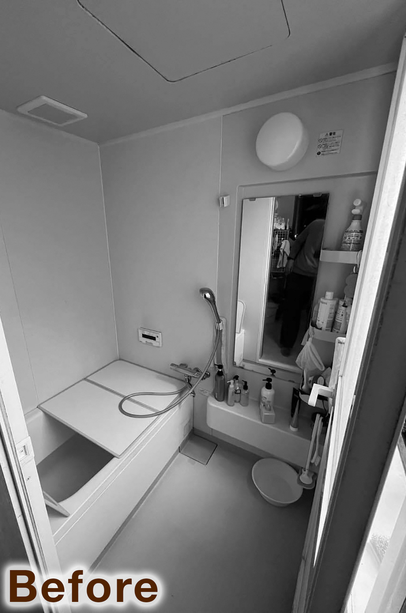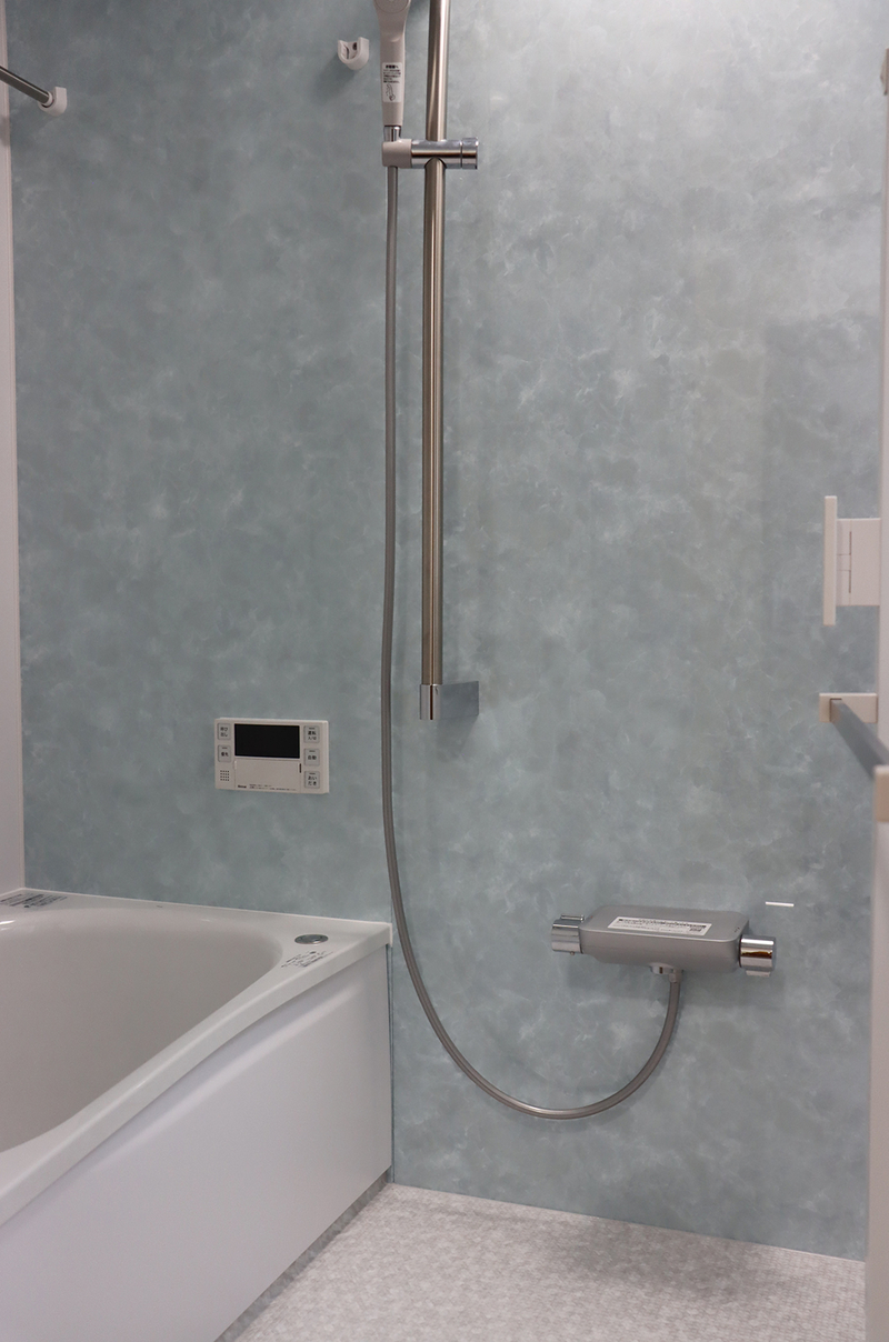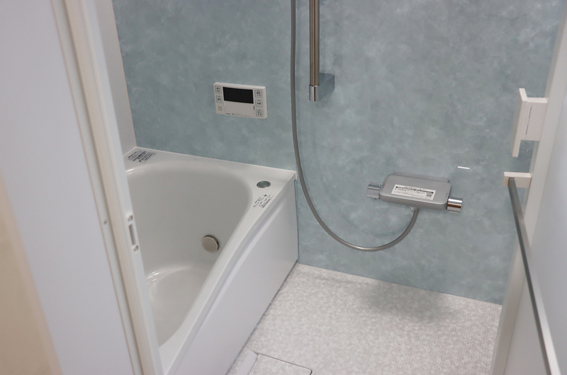 お風呂はTOTO/サザナ HTシリーズ Sタイプ(1216サイズ)に取替え。洗い場のカウンターや棚はなくしてスッキリと。汚れ落ちのよい人工大理石浴槽をセレクトして、お手入れの手間を軽減。三乾王(浴室換気暖房乾燥機)も備え、冬でも温かく入浴できます。