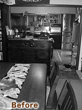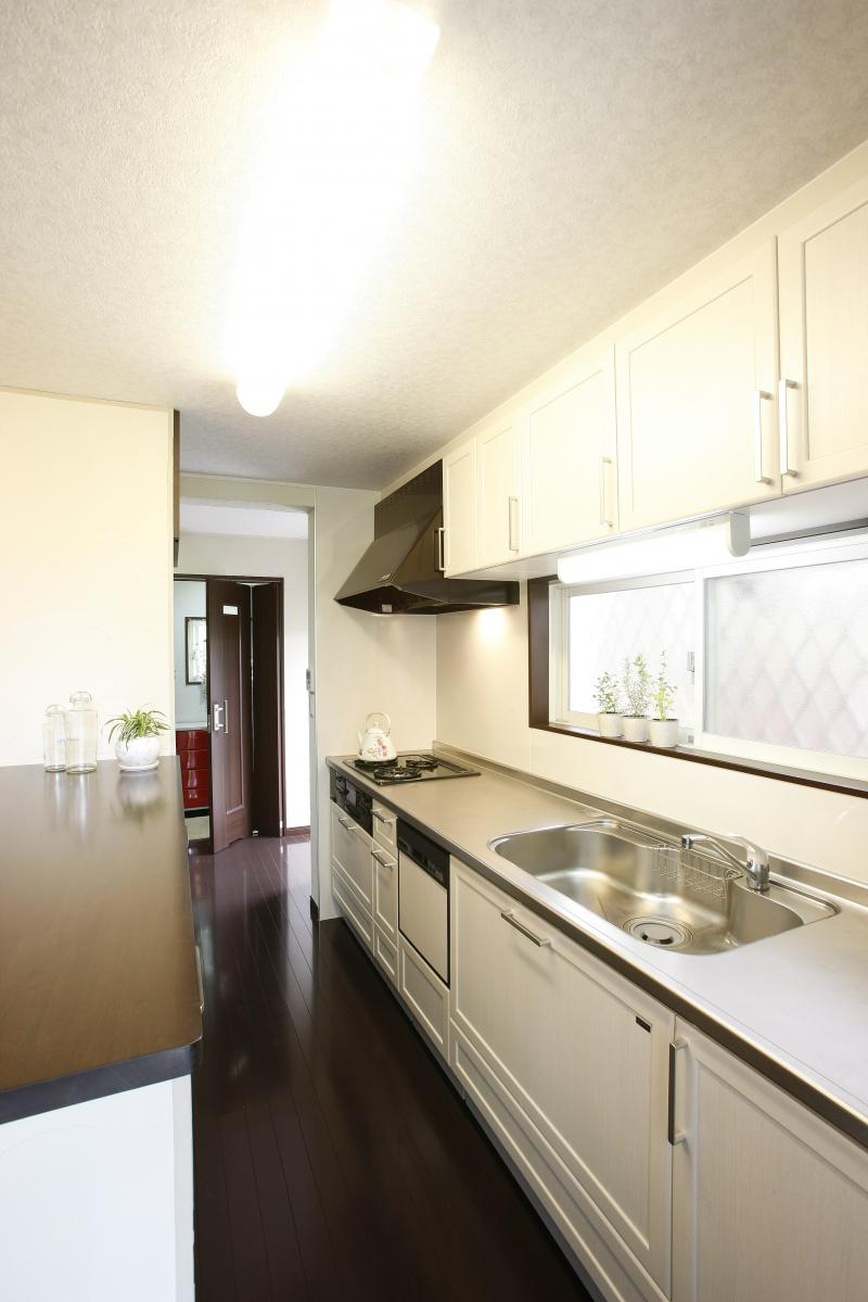 築30年の家は1つ1つのお部屋は広いのに、間仕切りで仕切られているために、キッチンや収納の使い勝手に問題がありました。また来客の際にリビングからキッチンが見えてしまうのを、奥様は気にしておられました。