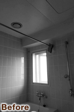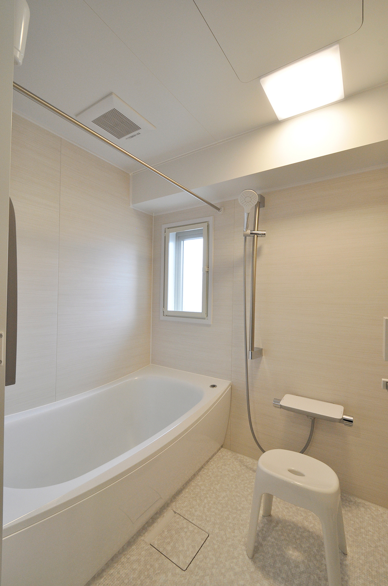 またぎの大きいユニットバスから保温性と清掃性の高い、安全で落ち着いた色彩のユニットバスに。設備はTOTO/リモデルWYシリーズ(1418サイズ)。