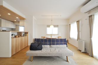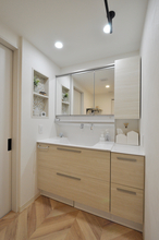 水回り設備を一新し、老朽化した給水・給湯配管も交換することで安心の暮らしを実現。また、間取りの一部変更を行い、使い勝手を大幅に向上させました。内装も全面的にリニューアルし、床には耐久性に優れたフローリング(L40)を採用。収納や下駄箱、扉も新調し、全体を"ナチュラルでシンプル"というテーマに合わせてコーディネートしました。
