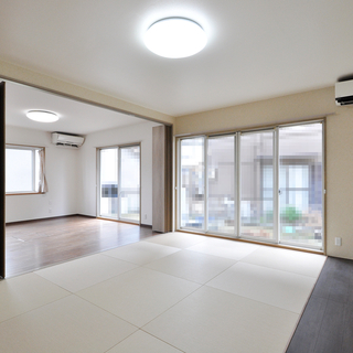 リビングは寝転がってくつろげるように畳スペース(DAIKEN/ここち和座)を確保。タンスやお仏壇など既存の家具が置けるように一部はフローリングにしています。