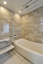 浴室は物入だった空間を取り入れ1318サイズから1717サイズに変更。掃除のしやすさ重視してTOTO/サザナ(Pタイプ)を設置しています。