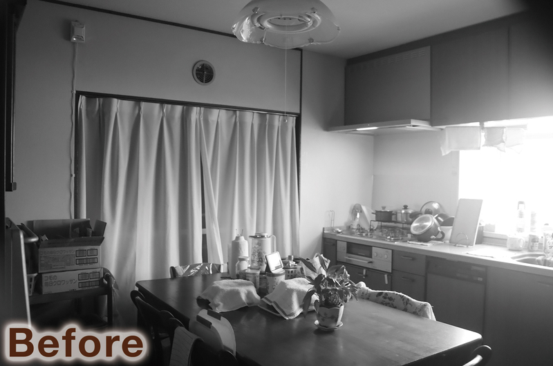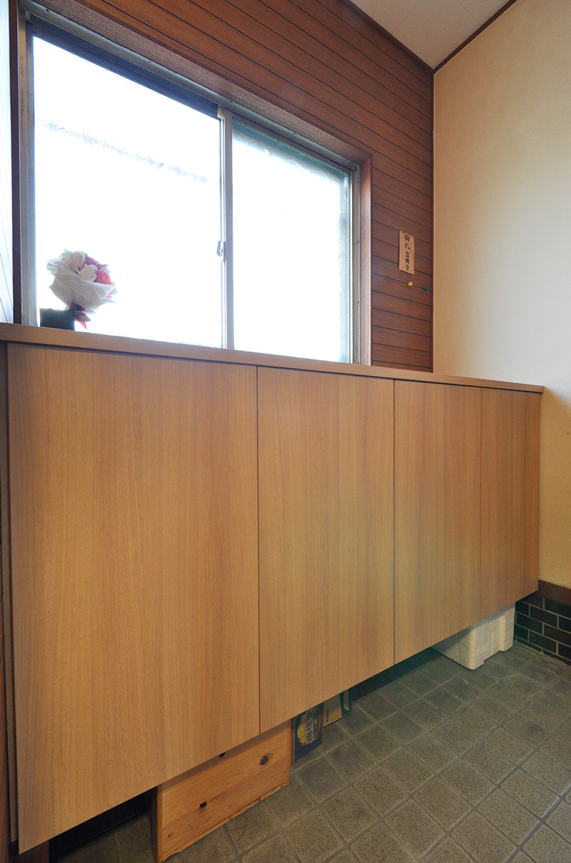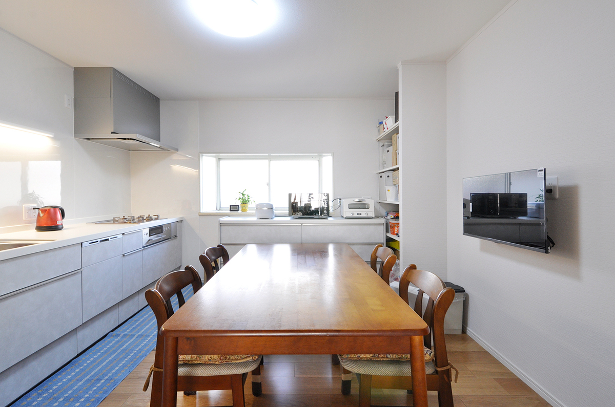 「収納を増やして、DKをすっきりさせたい」という想いから、キッチンまわりを大きく見直しました。西日が強く、これまで雨戸を閉め切って使っていた掃き出し窓は思い切ってなくし、キッチンの向きを90度変更。これにより、これまで奥にあって開け閉めしにくかった窓の操作がしやすくなり、毎日の使い勝手がぐっと良くなりました。