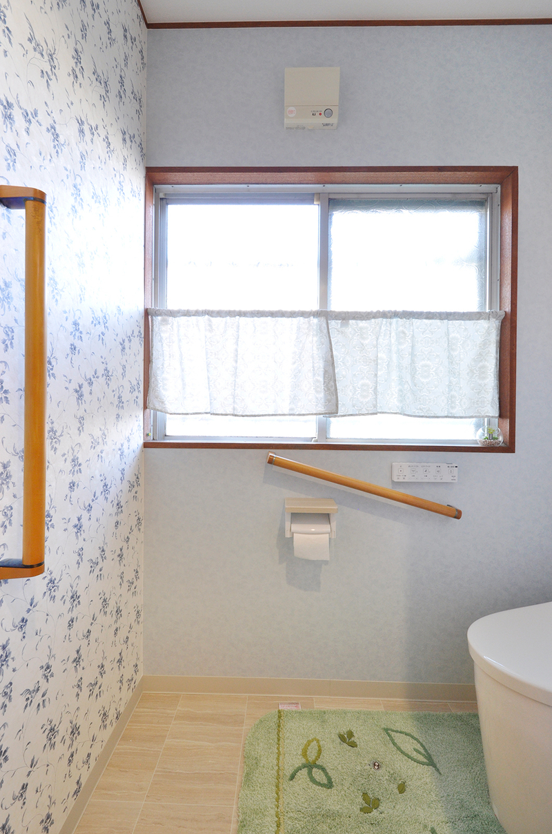 トイレは、使い慣れていたTOTOのピュアレストEXを採用。これまで便利に使っていた手すりはそのまま再利用し、安心感は変えずに使い続けられるようにしています。入口のドアは、開き戸から上吊りの引き戸に変更したことで、出入りがスムーズになり、動線もすっきりしました。洗面化粧台がトイレの隣に配置されたため、トイレ内の手洗いは思い切って撤去。その分、室内が広く感じられ、将来の使いやすさにも配慮した、ゆとりのあるトイレ空間になりました。