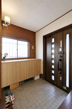 玄関ドアは、操作性と防犯性を高めるため、LIXIL「リシェント」に交換しました。スマートフォンが鍵代わりになるFamiLockを採用し、重たい荷物を持っていてもボタンひとつで施解錠ができ、とても便利です。施解錠の履歴も確認できるので安心感も高まりました。玄関収納は使い勝手を重視したオリジナル仕様に。底板を設けないことで、買い置きの荷物や宅配の重たい段ボールも持ち上げることなく収納でき、毎日の出入りがぐっとラクになりました。