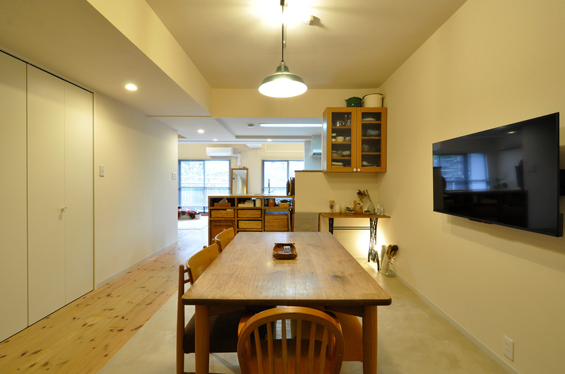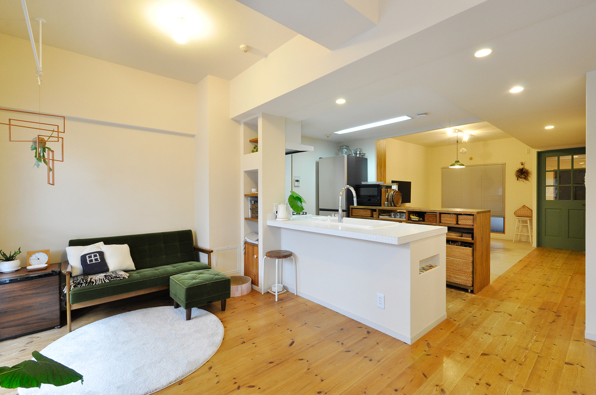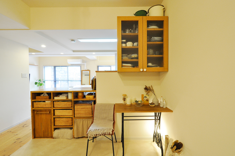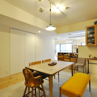 2010年にお子様の成長に合わせたリフォームを行った住まいが、15年の時を経て、今度はご夫婦の暮らしに寄り添う形へと生まれ変わりました。お子様の独立をきっかけに、部屋数よりも「広がり」と「心地よさ」を大切にした住まいづくりをご希望。居室をダイニングへと転用し、LDKを広げることで、ご家族が集まる時間も、日常のひとときも、ゆったりと過ごせる空間が完成しました。以前のリフォームで造作したカウンターや建具を再利用しながら、奥様のアイデアとお気に入りの家具・小物がやさしく調和する、ナチュラルで温もりのあるリノベーションです。