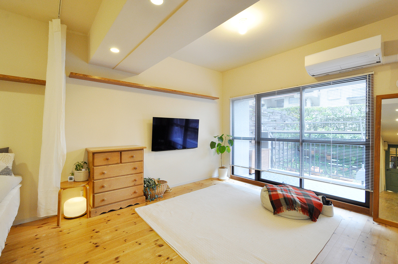 以前は小上がりとして使っていたスペースを撤去し、カーテンでゆるやかに仕切れるベッドルームへと生まれ変わりました。段差がなくなったことで動線がスムーズになり、毎日の出入りも安心です。さらに、15年前に造作した3段のキャットウォークと、今回新たに設けたリビングのテレビ上部へと続くキャットウォークをつなげ、愛猫が室内をのびのびと行き来できる工夫もプラス。ご家族も猫ちゃんも、心地よく過ごせる寝室空間になりました。