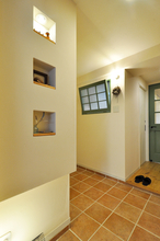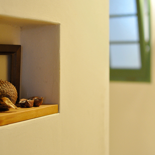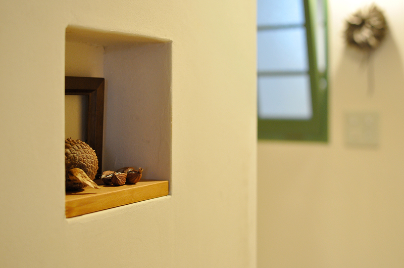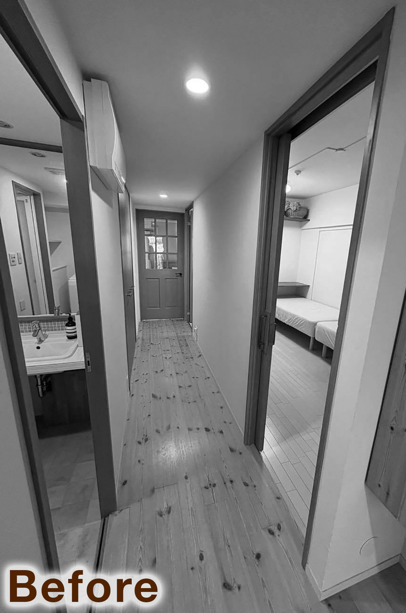 既存の建具は、ゲストルーム・トイレ・洗面脱衣室・ウォークインクローゼットまで、すべてホワイトに塗装して統一しました。ハンドルも白系に揃えることで、空間全体が明るくやさしい印象に。視線の高さから濃い色味をなくしたことで、無垢フローリングやテラコッタタイル、集成材の木目がより美しく引き立ち、住まい全体に軽やかな一体感が生まれています。毎日目にする場所だからこそ、心地よさを実感できる仕上がりです。