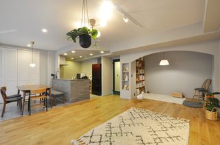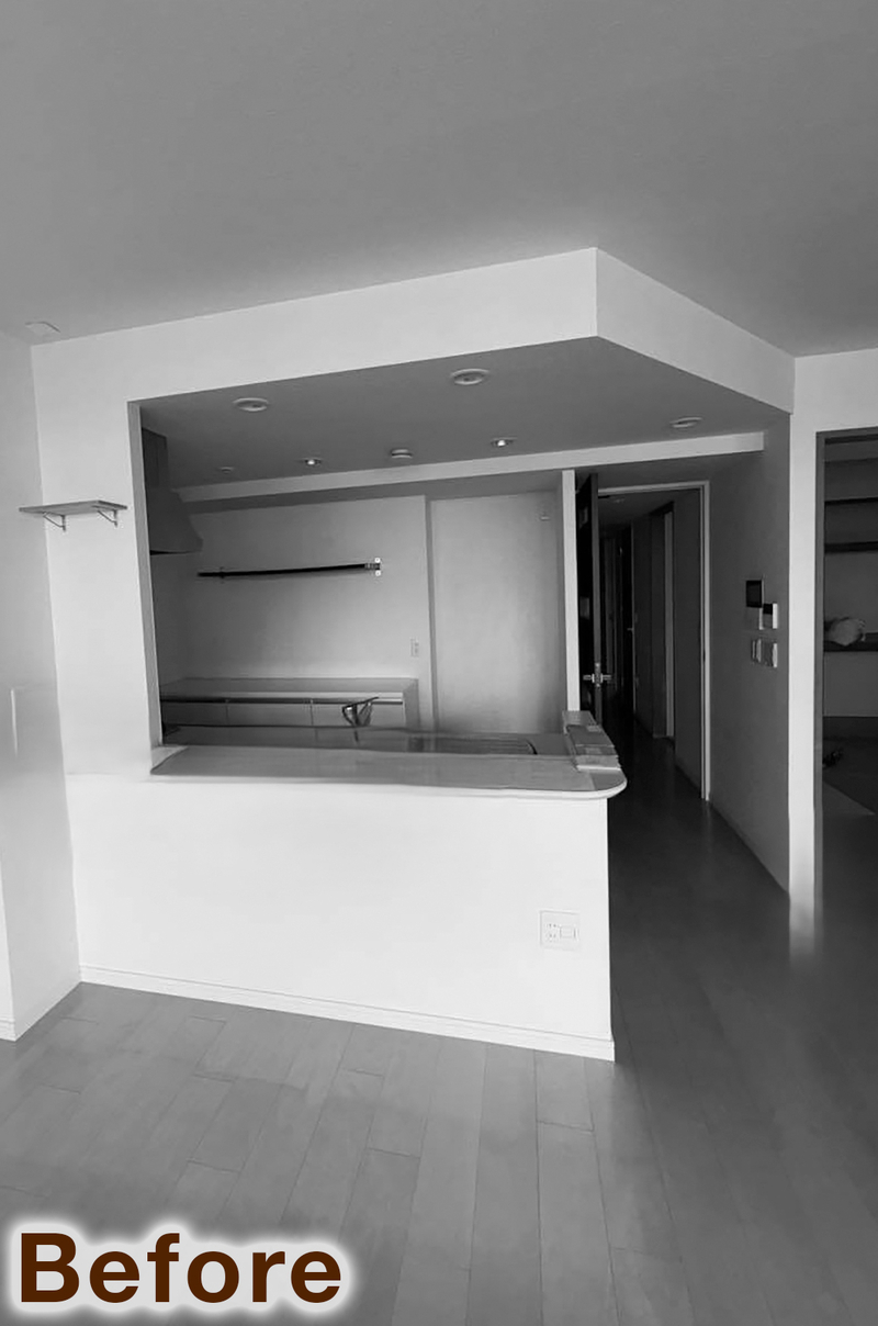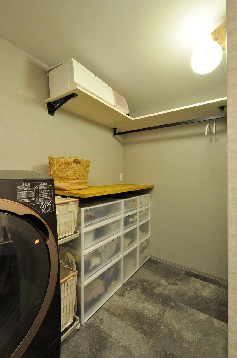 お子様のご成長を見据え、賃貸住宅から中古マンションへお住み替えをされたO様。これからの子育てを心地よく過ごせる住まいを目指し、奥様のお好きなテイストを取り入れたフルリノベーションを行いました。天然木のぬくもりを感じる無垢材のキッチンやオークの挽き板フローリングをベースに、グレートーンの内装やエコカラットを組み合わせることで、甘さを抑えた落ち着きのあるMIXスタイルを実現。収納や室内干しスペースを備えた洗面脱衣室や、ウォークスルー動線を確保したファミリークローゼットなど、デザイン性と機能性を両立した住まいへと生まれ変わりました。