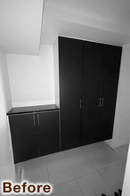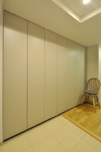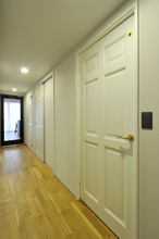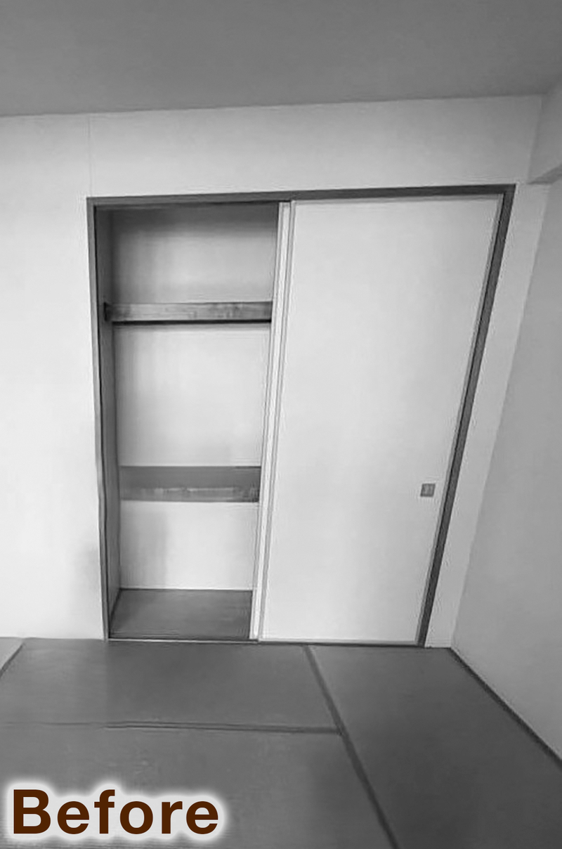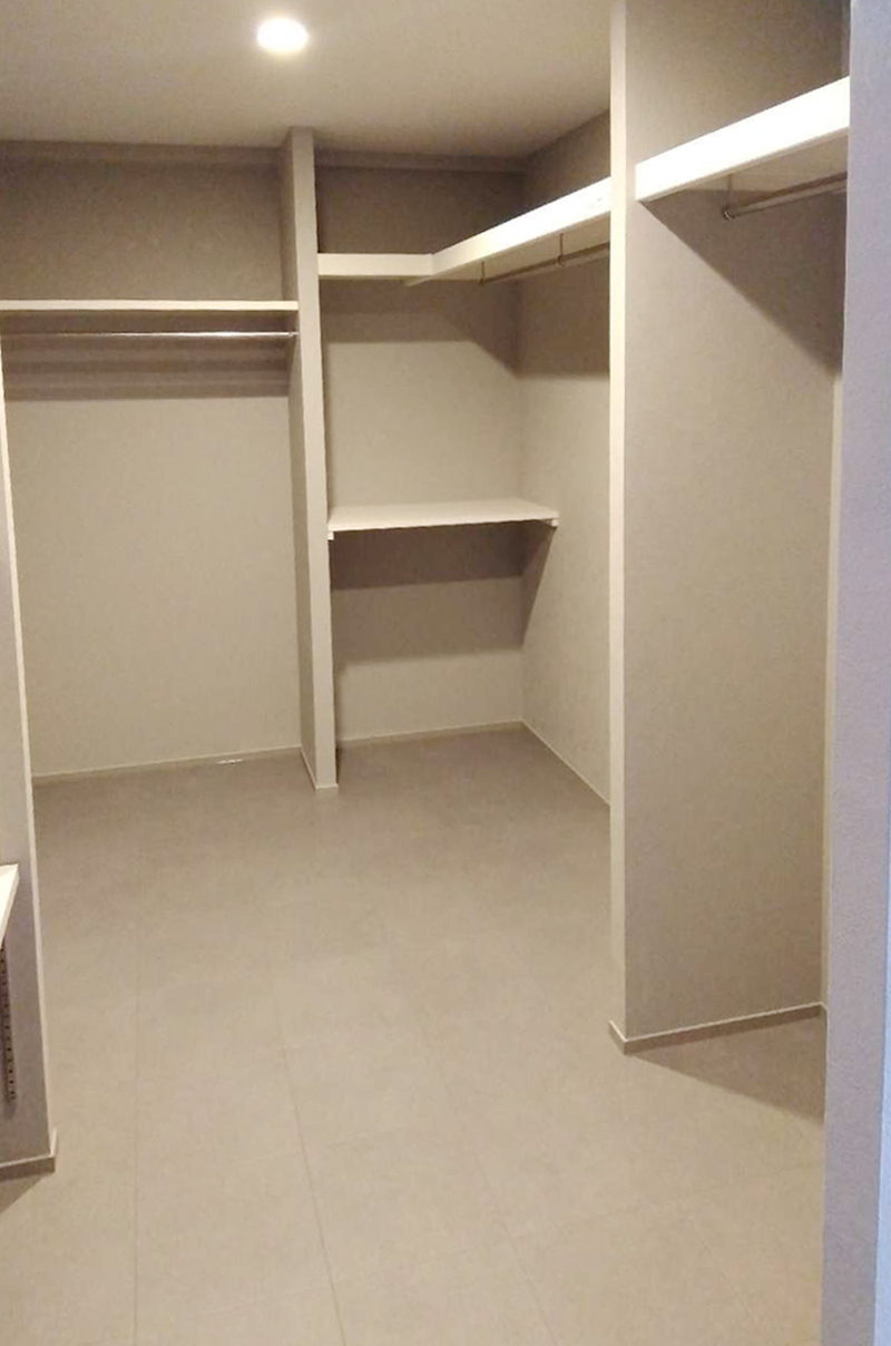 これまで分かれていた押入れ・納戸・クローゼットをひとつにつなげ、大容量のウォークインクローゼットへとリフォームしました。主寝室から廊下へと通り抜けができるウォークスルー動線とすることで、朝の身支度や片付けもスムーズに。廊下側の入口にはやさしい印象のR開口を採用し、空間のアクセントにもなっています。ご家族みんなの衣類や小物をまとめて収納できる、使い勝手の良いファミリークローゼットが完成しました。