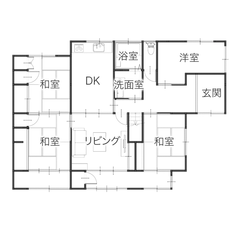 3年前にキッチンリフォームをご依頼いただいたJ様より、再びお声がけをいただき、今回は浴室や洗面室などの水まわり設備の一新に加え、サッシの取り替えや内窓の設置、和室の洋室化などを行いました。経年による設備や内装の老朽化をきれいに整えながら、断熱性の向上にも配慮し、これからの暮らしに寄り添う住まいへとリフォーム。縁側とリビングをつなげた開放的なLDKや、フローリング仕様の洋室など、快適性と使いやすさを高めた空間へと生まれ変わりました。冬場もあたたかく過ごせる、心地よい住まいが完成しています。