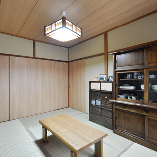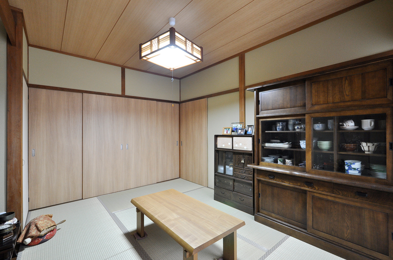 以前は竿縁天井や襖など、純和風の趣が強い和室でしたが、天井をクロス仕上げに変更し、襖も木製建具へと取り替えることで、やさしい印象の和室へと生まれ変わりました。もともとの落ち着いた雰囲気はそのままに、明るさと使いやすさをプラス。家具ともなじみやすくなり、日常使いはもちろん来客時にも心地よく過ごせる空間になっています。和の良さを活かしながら、現代の暮らしにフィットした和室です。
