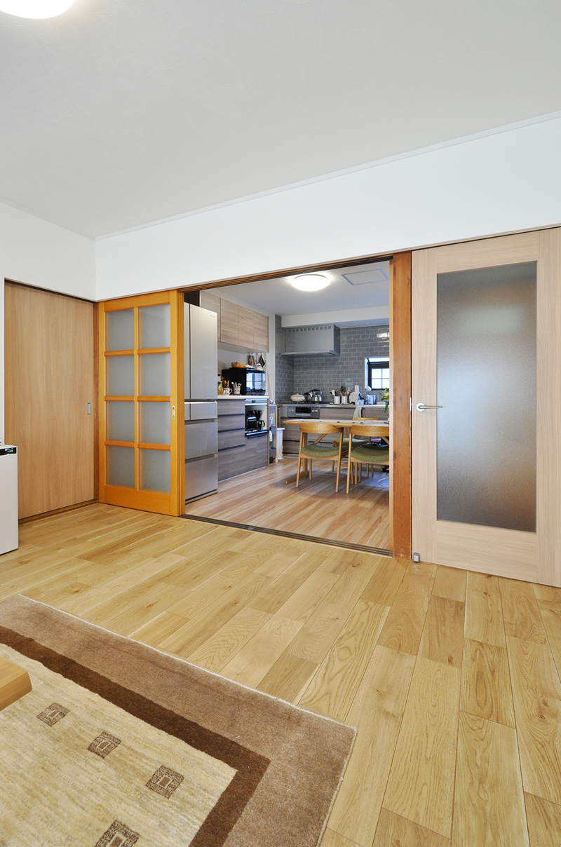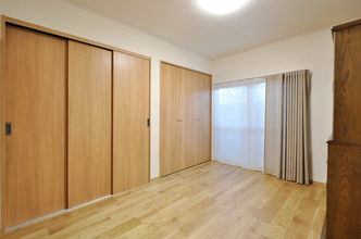 以前は畳敷きの和室だったお部屋を、フローリング仕様の洋室へとリフォームしました。襖は木製建具へと変更し、真壁だった壁も大壁にすることで、すっきりとした印象の空間に。さらに内窓を設置したことで断熱性も向上し、一年を通して快適に過ごせるお部屋になりました。明るく開放的な雰囲気に生まれ変わり、これからの暮らしに合わせて使いやすい居室へと整いました。