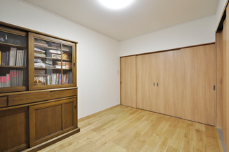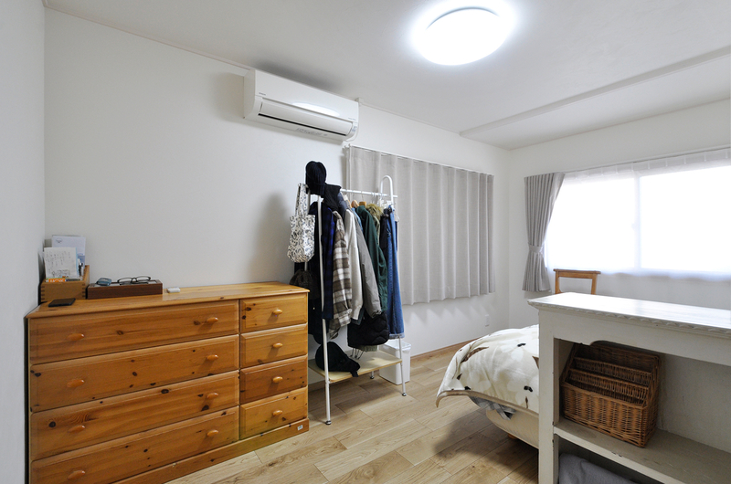 窓や建具を新しく取り替え、カーペットだった床はフローリングへと張り替えました。お部屋全体が明るくなり、すっきりとした印象に生まれ変わっています。床材の変更によりお掃除もしやすくなり、毎日のお手入れの負担も軽減。シンプルで落ち着きのある、快適な寝室空間に仕上がっています。