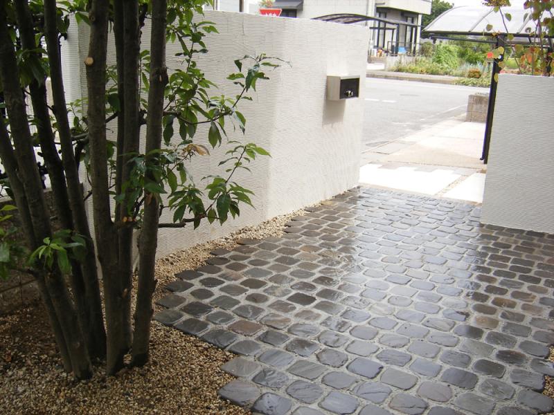 お話を伺ってみると、「共働きで2人とも夜が遅く、お庭の手入れも出来ないので、管理が楽で格好良くしたい」との事でした。そこで全体的に管理が楽で、建物と調和の取れたデザインを心がけお庭・エクステリアづくりが始まりました。