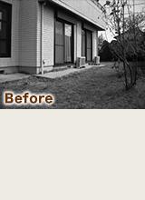 140㎡のメインガーデンには芝生が伸び、水はけが悪いため雑草が生えやすく、ご自分達で植えたゴールドクレストの成長が早く大きくなりすぎ、管理が出来ないのが悩みでした。