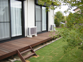 またリビングの前に1.2m位のタイルテラスが有りましたが、室内の床との高低差が有る為に部屋の延長として使うことが難しい状態でした。