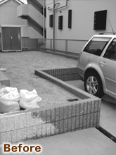完成したばかりの家にお住まいのI様。お庭の工事をしていなかった事もあり、まだ家が完成していない気がしておりました。そんな時にインターネットで弊社ホームページを見つけていただいて、お話を進めていくことになりました。