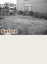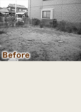愛知県春日井市の閑静な住宅街の一角に建つT様邸。築3年のご自宅はカーポートなどのエクステリアは完成していましたが、庭はまだ手付かずで、約14坪の スペースに今回お庭のデザインと施工を担当しました。「まわりの建物を隠して、緑に囲まれたプライベートな空間がほしい。」というのがT様のご希望でし た。