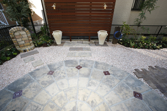 またハードウッドのフェンスや石張りのテラスなどはすべて自然の素材ですので、植物の緑と溶け合うアースカラーにまとまり、居心地のよい雰囲気になりました。この場所で大切な人と紅茶を入れて過ごす時間を楽しんでいただけそうです。