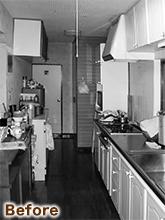 以前のキッチンは横幅が広いのに、収納の使い勝手がよくない等のお悩みを持たれていました。そこでまずキッチンの利用状況と収納物の聞き取りを実施。キッチン本体の横幅は縮小可能であったため縮小。余ったスペースは収納にいたしました。