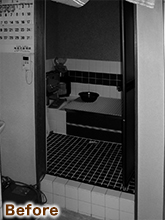 将来の事を考慮し建具を引き戸に替え、段差をなくしました。また床材にはお掃除がしやすく防臭効果もある、TOTOのハイドロセラを採用。お掃除の手間を軽減させました。