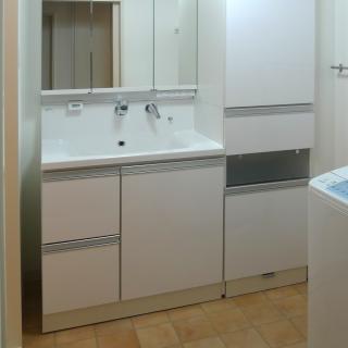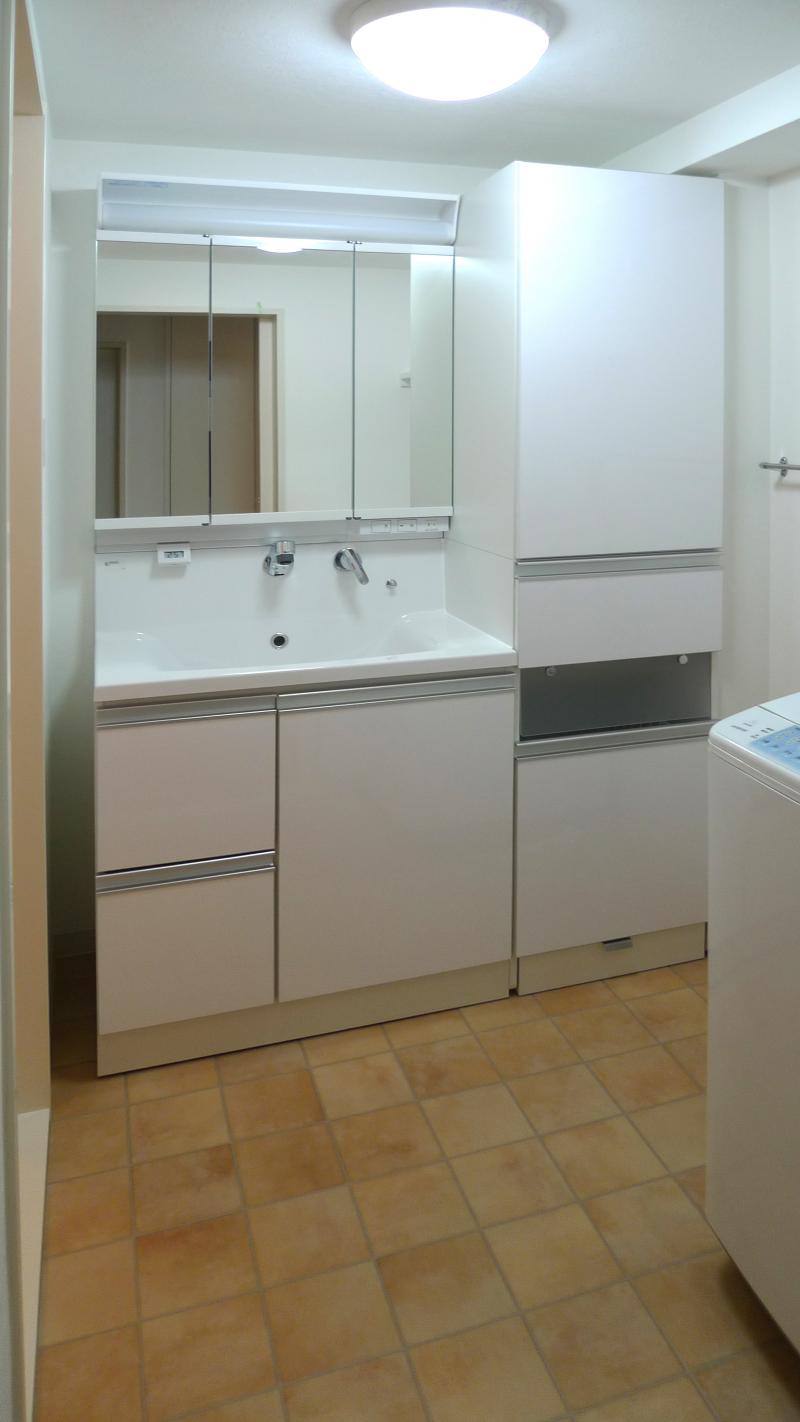 水廻り・玄関の床にはH様のご希望のタイル調のフロアで統一感のある空間に。