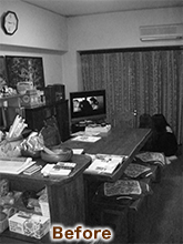 リビングに趣味や仕事関連の本、DVDをたくさんお持ちのH様。継ぎ足しで揃えられた書棚には統一感がなくデザイン的にもご不満も感じていました。また、「もし、大きな地震があったら・・・」と不安も・・・