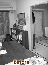 以前は、扉と壁で間仕切られていた和室とリビングダイニング。壁は撤去し、天井まである可動式の扉に交換。開放的な空間となりました。