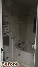浴室は魔法瓶浴槽やほっカラリ床で冬場も暖かく、お掃除もしやすいWFシリーズ。横長の鏡で広がりを感じるお風呂になりました。
