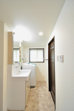引き戸にすることで移動しやすく生まれ変わった洗面所。