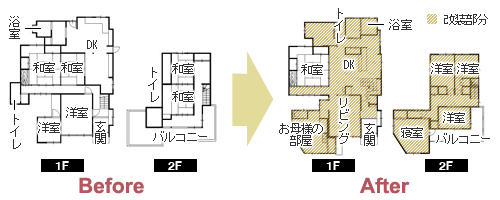 またお母様専用で、明るい南側に個室を増築。「新築も考えましたが、リフォームでよかった。思い出をそのままに、安心と暮らしやすさをプラスできました。」とお喜びの声をいただきました。
