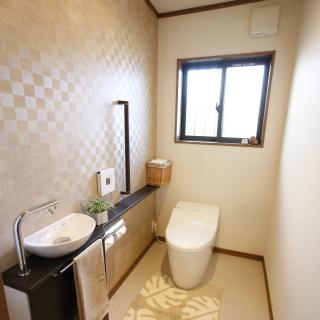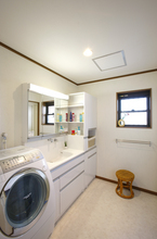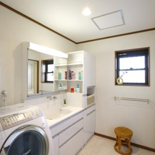 水廻りは清潔感ある白を基調にまとめています。浴室暖房や手すりを付けてお母様にも使い勝手の良い空間です。