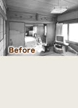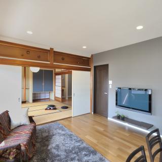 昔ながらの風情を感じる大きく立派な日本家屋にお住まいのA様。古きよき趣をなるべく損なわないように、1尺角もの大黒柱をはじめ、欄間やガラス障子などを出来るだけ残し、モダンと美しく融合させた二世帯住宅へリフォーム。