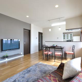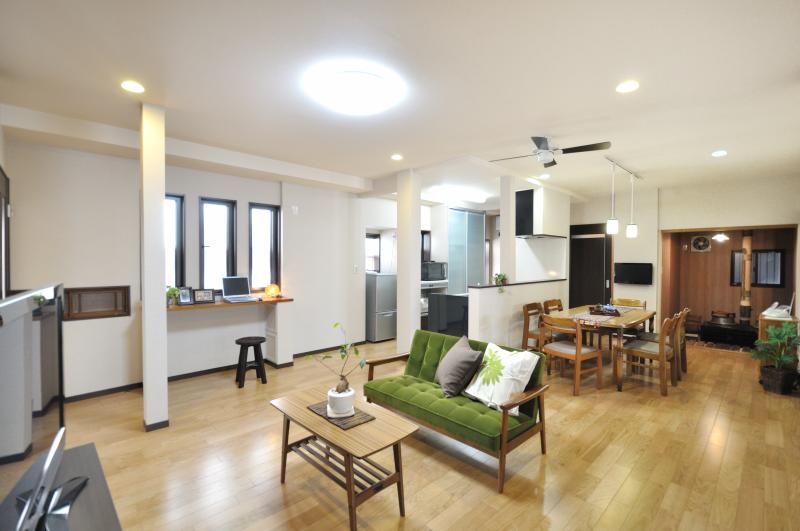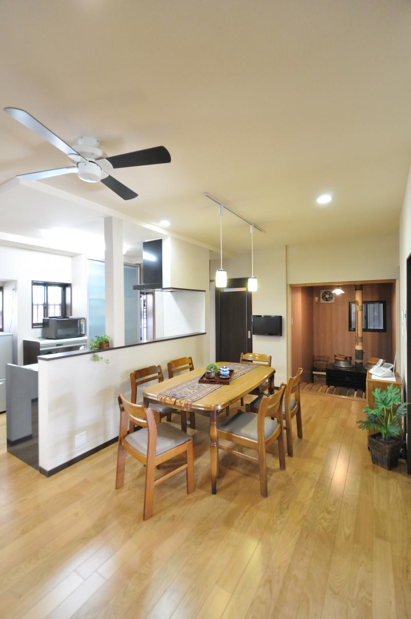 頻繁にご兄弟の家族が集まったり、地域のお祭り時には大勢の来客があるため、LDKは和室と繋げて開放的なレイアウトに。床暖房も完備。いつでも子供たちが走り回って遊んでいます。