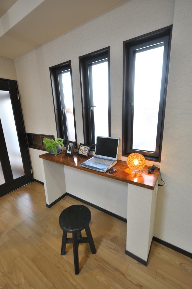 窓台のカウンターは、床の間で長年使用されてきた一枚板を再利用。