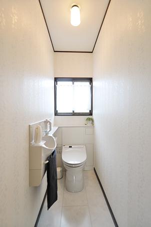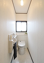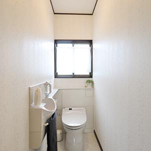 便器はそのままに内装貼り替えと、廊下との段差を解消。バリアフリーに。