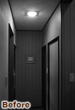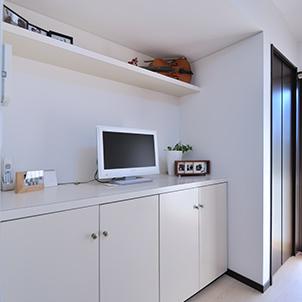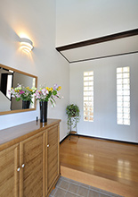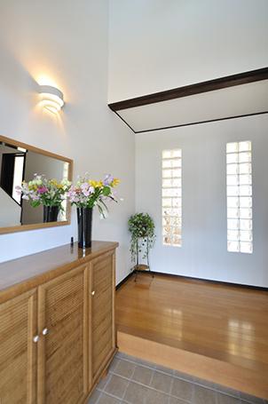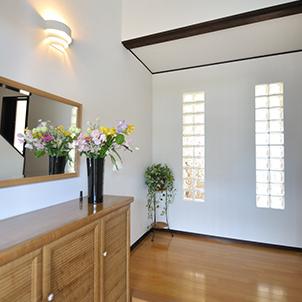 光がほとんど入らなく、昼間でも薄暗かった玄関ホールは、リビングとの壁にガラスブロックを入れ採光をアップ!お出迎えも自然と明るくなります。