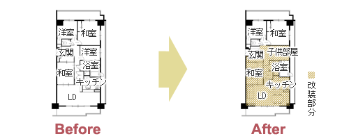 | リフォーム箇所 | リビング、ダイニング、キッチン、和室、子供部屋、洗面脱衣室、廊下 |