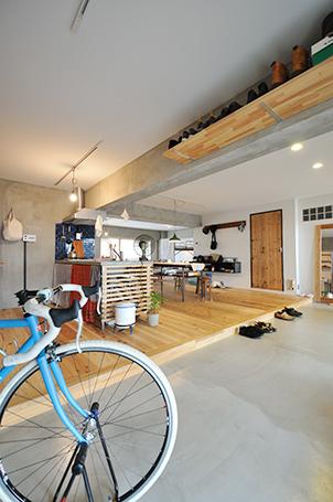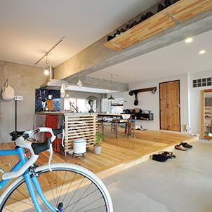 3LDKから思い切ってワンルームに変更。(将来は2LDKにも変更可能な間取り)土間はかなり広めに確保しました。自転車がご趣味のS様。土間は愛車を飾ったり、メンテナンスをしたりと重宝するそう。