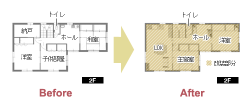 | リフォーム箇所 | 2階全面(ダイニング、キッチン、和室、子供部屋、洗面ホール,トイレ) |