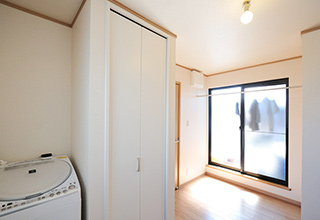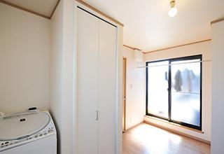 今まで1階の洗濯機を使っていたので、「洗濯機が2階だと干すのも近いので、動線がすごく楽!」とお喜びの奥様。夏の日差が強い時や冬の寒い時などは、テラスに居る時間を短くするために、一度室内物干しでセットしてからテラスに出るそうで、「すごくいい!」とご満足頂いています。