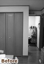 子供部屋だったスペースを、畳敷きのご夫妻の主寝室に。昼間はダイニングからつながる居間としても使えます。引分け扉の枠には、リアテックという建材シートを貼り、リフォーム後に変えた扉ともテイストを合わせました。